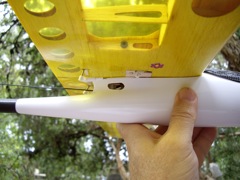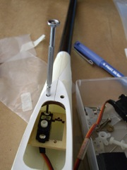act as a pivot. The screw engages with the fibreglass hole in the fuselage.