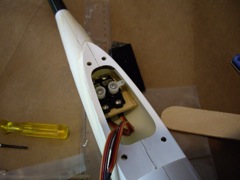 I am using a Hyperion Titan 20A ESC which should have enough BEC capacity for the 4xNES371 servos. I wanted to retain the option of using some 2000mAH 3s LiPo packs I have although this is clearly overkill as far as endurance is concerned. The weight penalty should not be a serious issue.
